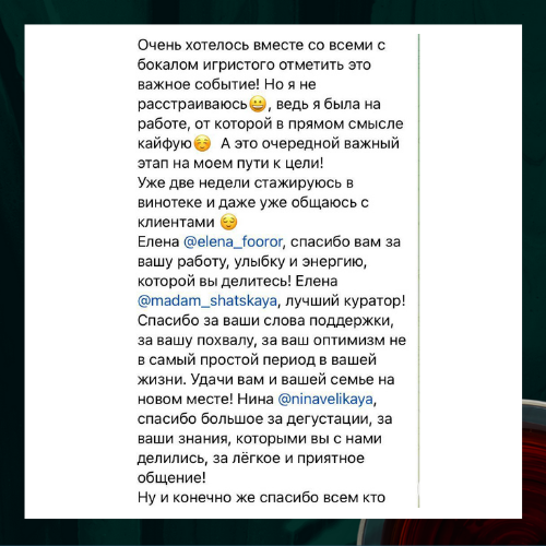- выпускники школы работают в ресторанах и винотеках, в которых вы точно были: Новиков, Лондон групп, Wine Room и др.